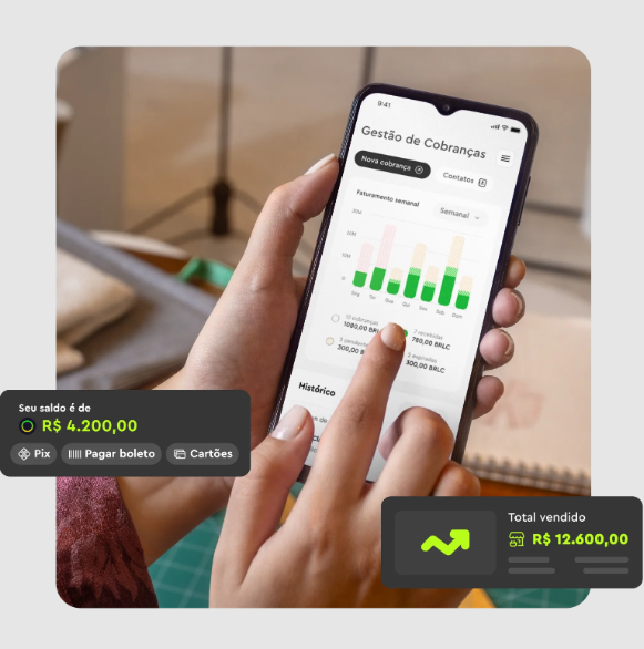 Com links de pagamento e cobranças automáticas, você pode vender online, enviar faturas personalizadas e receber de qualquer lugar do Brasil.